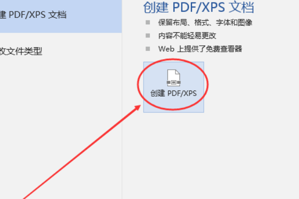 4、在导出页面,选择并点击一下右侧的“创建 PDF/XPS”按钮。