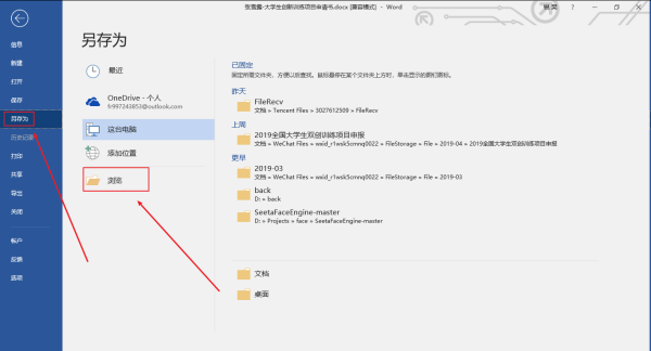 2丶选择另存为,接着点击浏览。