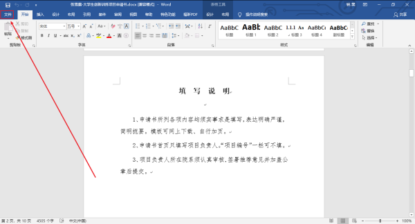 1、用word打开要转化的文档,点击左上角“文件”选项;