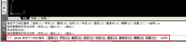 cad中快速标注(简命令qdim)是不能用于对齐标注的,对齐标注只能用对齐标注命令(简命令DAL)来完成。但是cad中快速标注可以替代线型标注,半径,直径等。如图所示即是执行快速标注命令后的信息提示,很清楚的可以看到是没有对齐标注这一功能的: