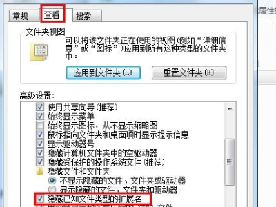 3、选择“查看”。把“隐藏已知文件类型的扩展名”取消选择。单击“应用”,然后单击“确定”。