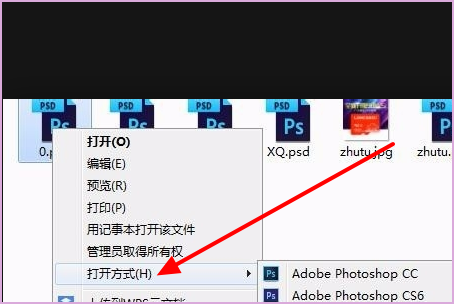 1、首先右键单击”无法完成请求,因为磁盘错误“打不开的PSD文件,选择“打开方式”。