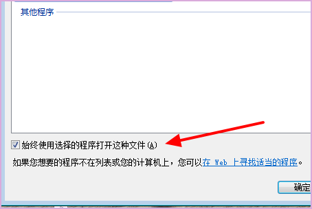 3、然后在弹出来的窗口中选择打开的PS程序,点击打勾“始终使用选择的程序打开这种文件”,回车确定。