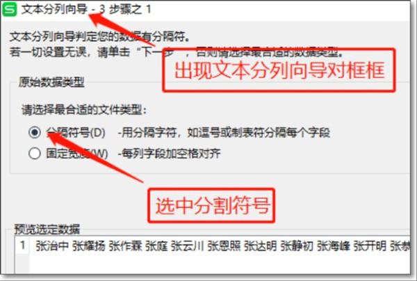 3、第三步,执行完上面的操作之后,选择“分隔符号”选项,然后单击“下一步”,见下图,转到下面的步骤。