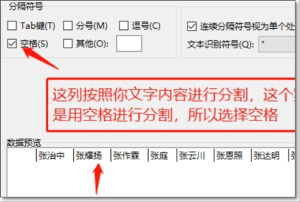 4、第四步,执行完上面的操作之后,根据内容,按照规则,选择分列的方式,这里选择“空格”进行分列,选择后,下面有分列效果,单击“下一步”,见下图,转到下面的步骤。