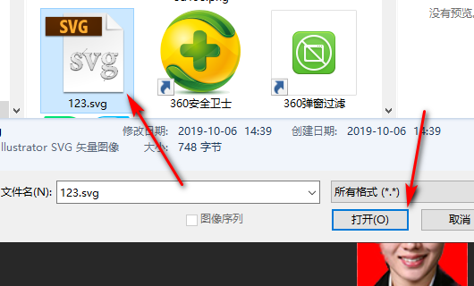 2、点击打开后,选择SVG格式文件,然后点击打开。