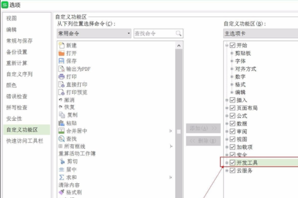 2、一次打开EXCEL中的工具、选项、自定义功能区,在自定义功能去勾选“开发工具”,启用开发工具。