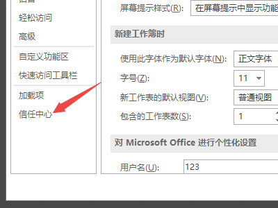 3、之后在打开的选项页面中,找到并点击信任中心。