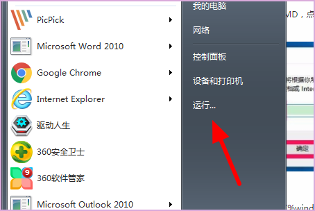 1、首先打开电脑,点击打开开始菜单栏中的“运行”。