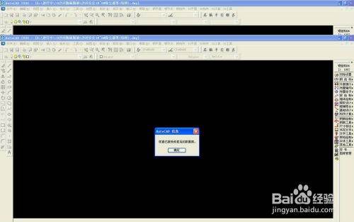 3步骤完毕后,会出现一个确定的小对话框,点击确定,就发现能打开已经出错的cad图纸了。这个时候,可千万别忘记顺便保存下自己修复后的cad图纸,这个好习惯慢慢培养吧。