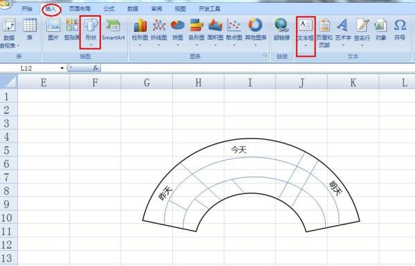 用Excel表格,选择菜单栏—插入—形状—选择-“空心弧”画外圈(角度、位置自行调整,调整时点一下插入框出现8个小框,中间位置深色小框拖动鼠标自由变化角度),再选“弧形”画内圈,选择“直线”画内框竖线,调整时点一下插入的线型,拖动调整,框内线条加粗,再精细调整到位。