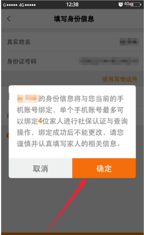 5、单个手机账号最多绑定4位家人进行社保认证与查询,且绑定后不可修改,谨慎须知并遵守,点击确定。