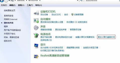 2、接着在弹出来的界面中,点击窗口左侧的“更改计算机睡眠时间”项。