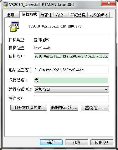 1、最快的方法就是下载Microsoft Visual Studio 2010 Uninstall Utility后,单击右键-》发送到-》桌面快捷方式,然后到桌面上,右键单击该快捷方式-》属性-》快捷方式-》内容 的 目标 后面加上 /full /netfx,如下图。