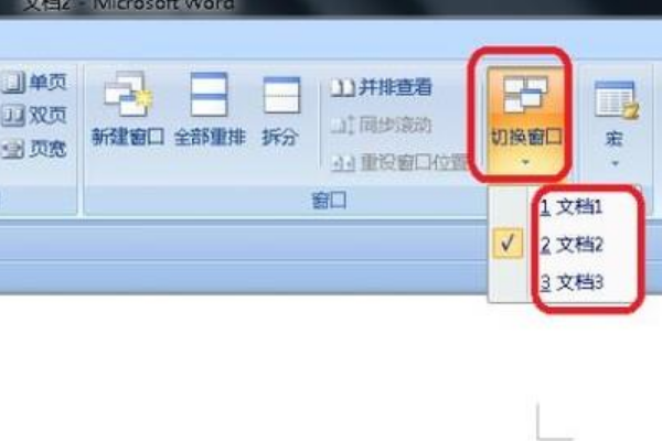 4、此时,3个文档就在一个窗口中显示了,如图所示,我们点击菜单栏“视图”,然后点击“切换窗口”,就可以切换并编辑不同文档了。