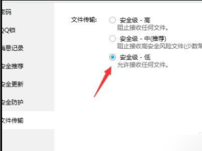 5、最后在弹出来的窗口中,勾选安全级-低(允许接收任何文件),如下图所示问题就解决了。