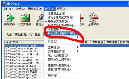 3、在选项里勾选,执行音轨增益时不裁减。防止在操作过程中裁减音轨,改变MP3文件。