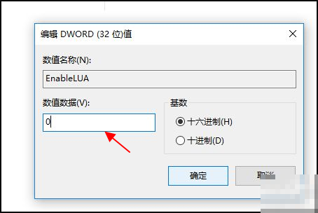 6、在弹出编辑值界面,数值数据改成“0”后点确定按钮退出,