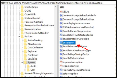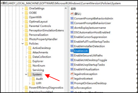 3、在打开的注册表编辑器中,找到HKEY_LOCAL_MACHINE\SOFTWARE\Microsoft\Windows\CurruntVersion\Policies\System注册表项,