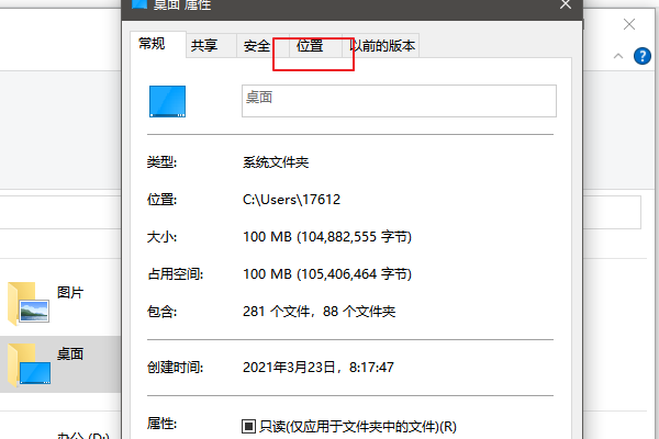 4、弹出桌面属性窗口,点击窗口中的“位置”。