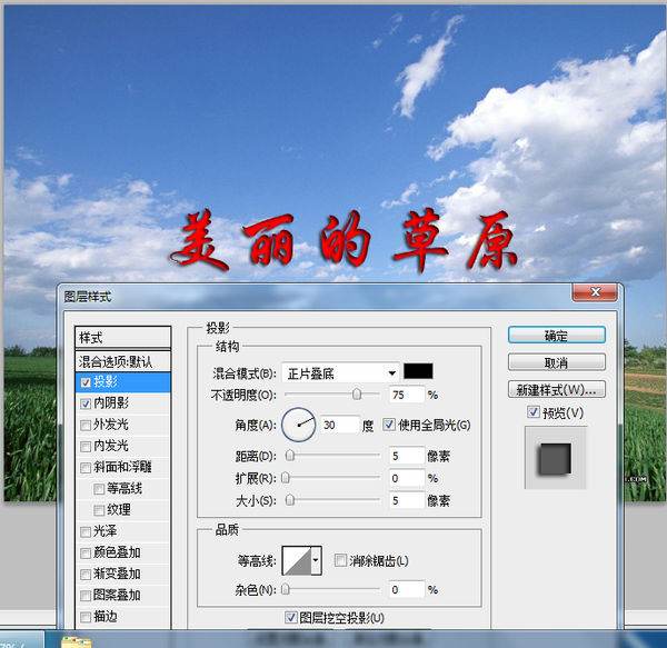 2、右键文字图层--混合选项,运用投影和内阴影,如下图: