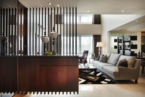 最后是玄关处的设计装修,能够展示住宅主人的生活品味和素质修养。目前有关玄关的设计形式也是多种多样,诸如采用与古代相类似的花纹镂空木质格栅式围屏,既古典雅致,又有一种朦胧美。