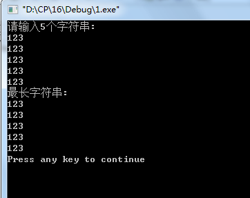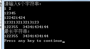 gment Assume CS:Code,DS:Code ; ------------------------------------- ; 功能:显示指定地址(Str_Addr)的字符串 ; 入口: ; Str_Addr=字符串地址(要求在数据段) ; 用法: Output Str_Addr ; 用法举例:Output PromptStr Output MACRO Str_Addr lea dx,Str_Addr mov ah,9 int 21h EndM ; ------------------------------------- ; 功能:把AX中的二进制无符号数转换成显式的十进制ASC语言:输入5个字符串,输出其中最长的字符串。若最长的字符串不止一个,则输出所有最长字符串。