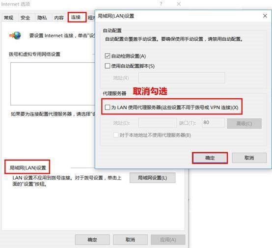 可能是 IE 中的代理设置导致,可进入Internet 选项---连接---局域网设置,取消勾选“为LAN使用代理服务器”