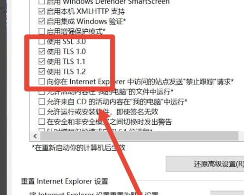 4、勾选“TLS 1.0"、"TLS 1.1"、”TLS 1.2"。