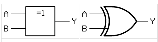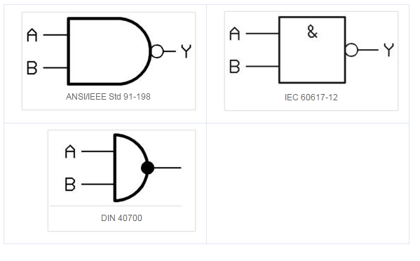 逻辑门的2种符号:形状特征型符号(ANSI/IEEEStd 91-1984)、IEC矩形国标符号(IEC 60617-12)。