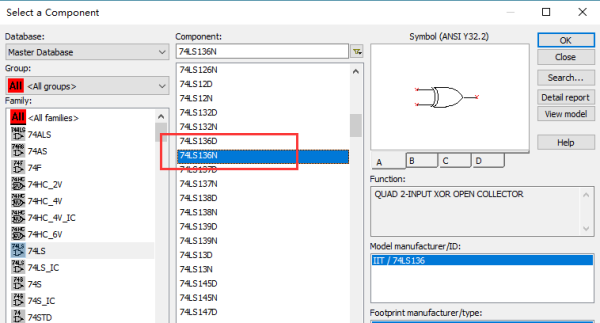 3、另外,也可以按照器件型号来找,比如74系列的74LS136,也是异或门。