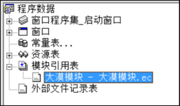 Windows窗口程序”,选择‘工作夹’里的‘程序’,然后双击【模块引用表】选项,选择要添加的易模块文件并将其打开,如下图所示,然后进入下一步。