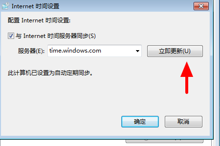 4、勾选“与internet时间服务器同步”,点击“立即更新”,就可以将本地电脑的时间恢复正确了;