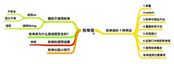 name()获取常量定义的字符串,注意不要使用toString(),ordinal()返回常量定义的顺序(无实质意义),可以为enum类编写构造方法、字段、方法,构造方法必须为private。