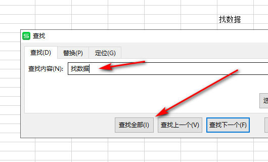 3、在查找内容输入要查找的关键词,然后点击查找全部。