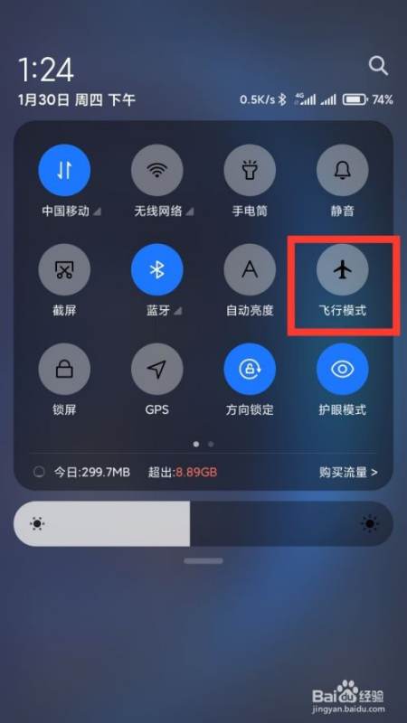 首先打开小米6手机下拉菜单栏,选择“飞行模式”,确保手机彻底与外界失去联系。