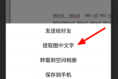 2、然后在弹出来的窗口中长按图片选择“提取图中文字”。
