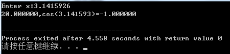 printf("%f,cos(%f)=%f\n",n,x,y);