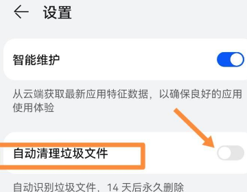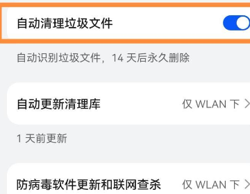 4、这时在自动清理垃圾文件右侧,轻触按钮即可开启。