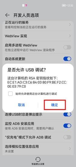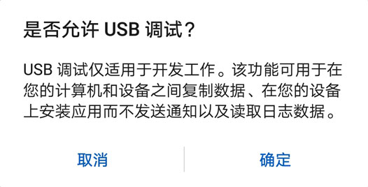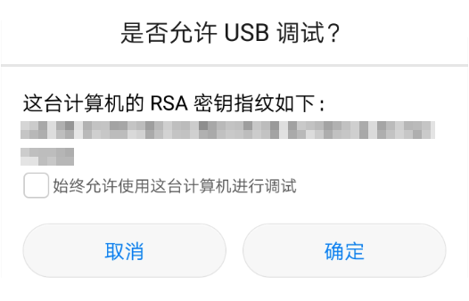 首次打开:弹出授权提示,勾选“始终允许使用这台计算机进行调试”,点击“确定”。