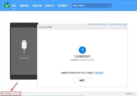 9)回退前,请先将华为手机助手升级到最新版本(10.0.0.510及以上)。