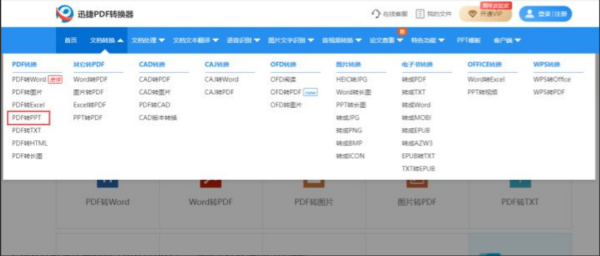 在PDF转换选项中找到「PDF转PPT」,这里支持多种自定义功能: