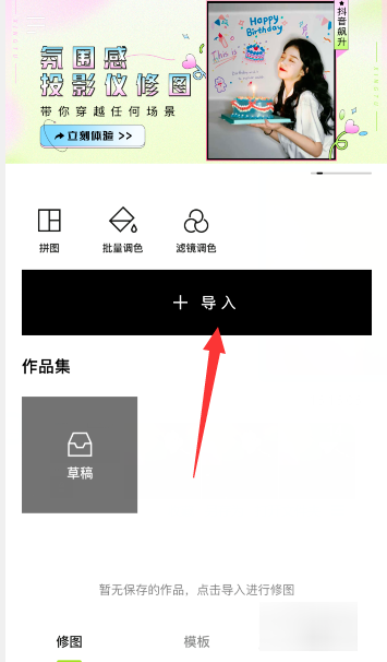 1、首先打开醒图app,在首页选择“+导入”功能。