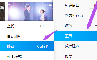 5、上面是对IE的,若是别的浏览器的话,在打开浏览器之后,点击右上角的菜单栏,在出现的选项中将鼠标放在‘工具’上,然后在出现的选项中点击“静音”,这样就能关闭当前网页的声音了。
