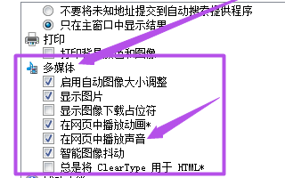3、下拉选项至“多媒体”,取消勾选“播放网页中的声音”;