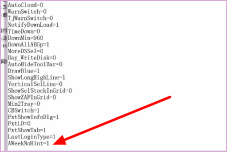 6、然后把AWeekNoHint后面的0改为1,保存关闭文本文档。