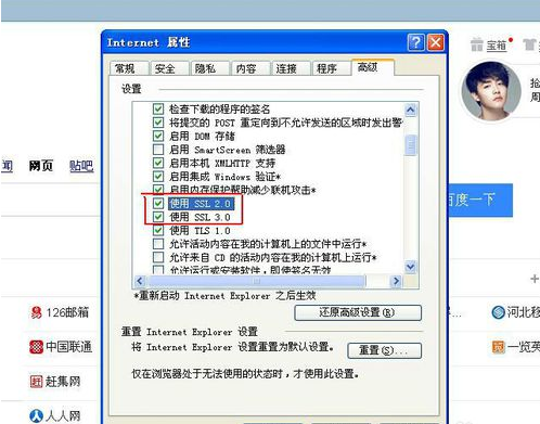 继续向下找到"使用SSL 2.0 "和"使用SSL3.0“,然后选中这两项。