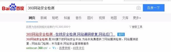 首先百度搜索360网站安全检测网站,然后点击进入!