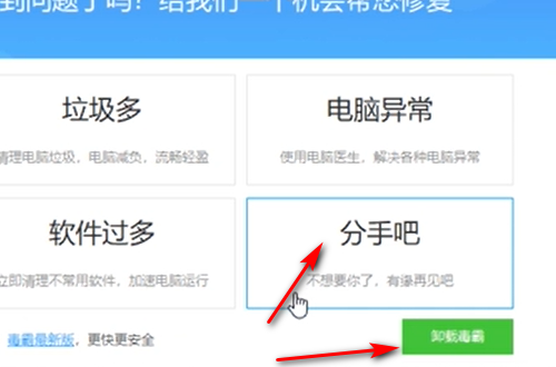 7、选择分手吧,然后点击卸载毒霸。