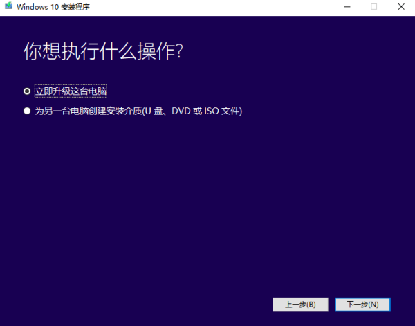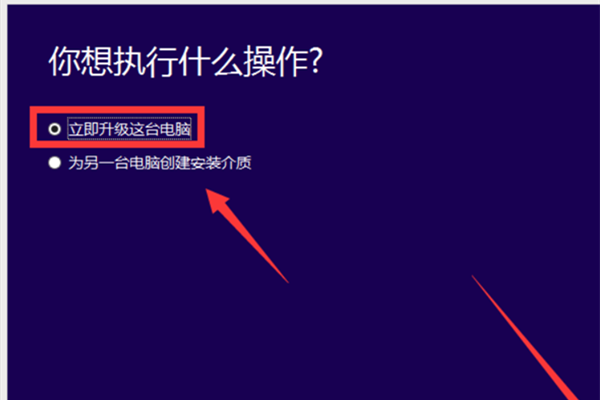 在您想要执行什么操作?页面上,选择立即升级这台电脑,然后选择下一步。